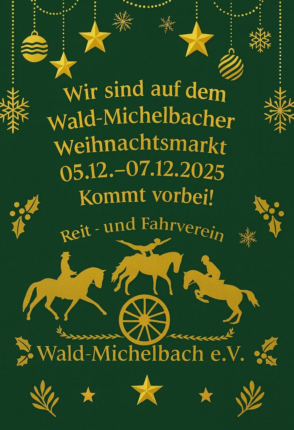 Vom 05.12. bis 07.12.2025 ist der Reit- und Fahrverein Wald-Michelbach e. V. mit einem eigenen Stand vertreten.